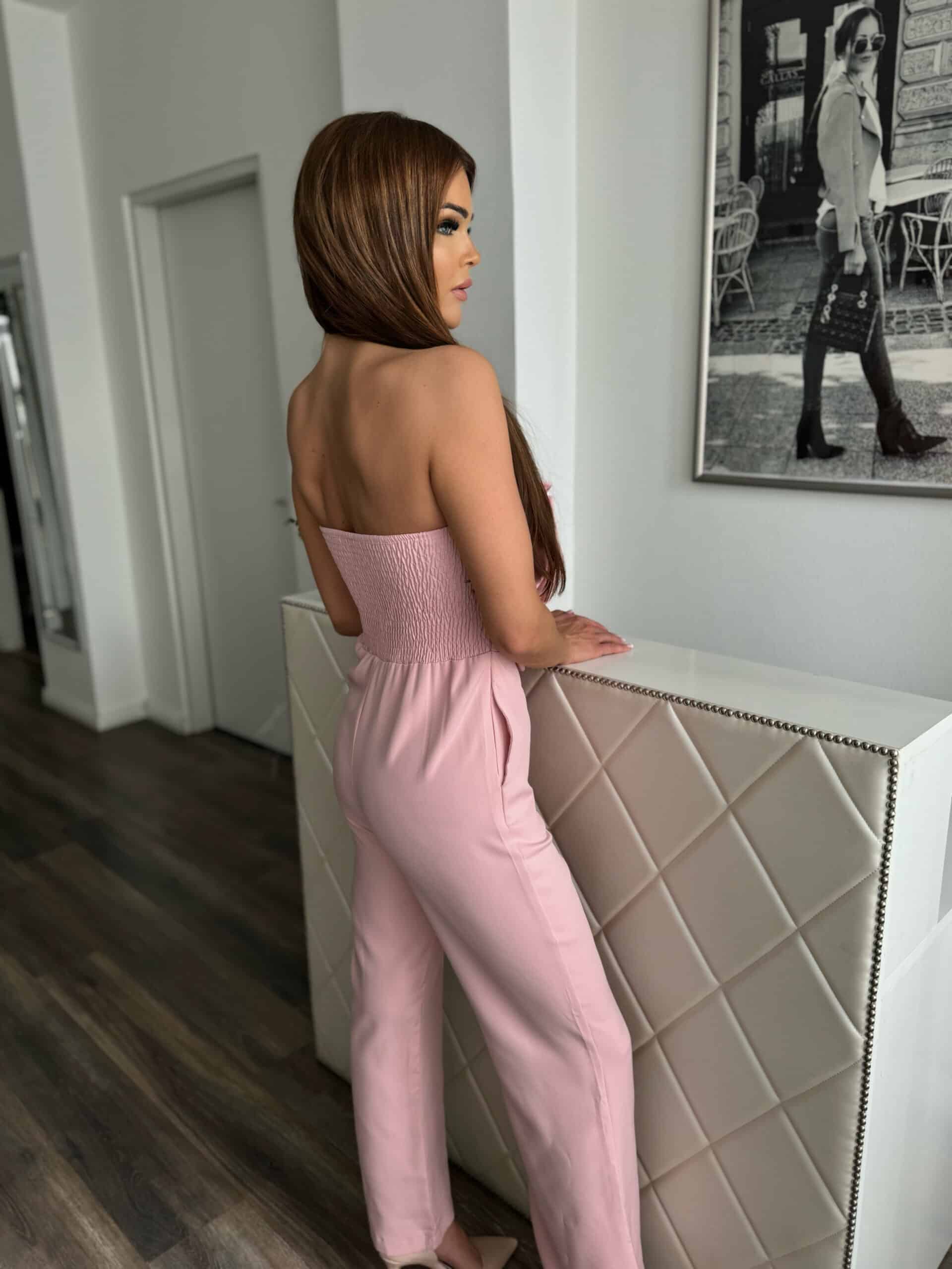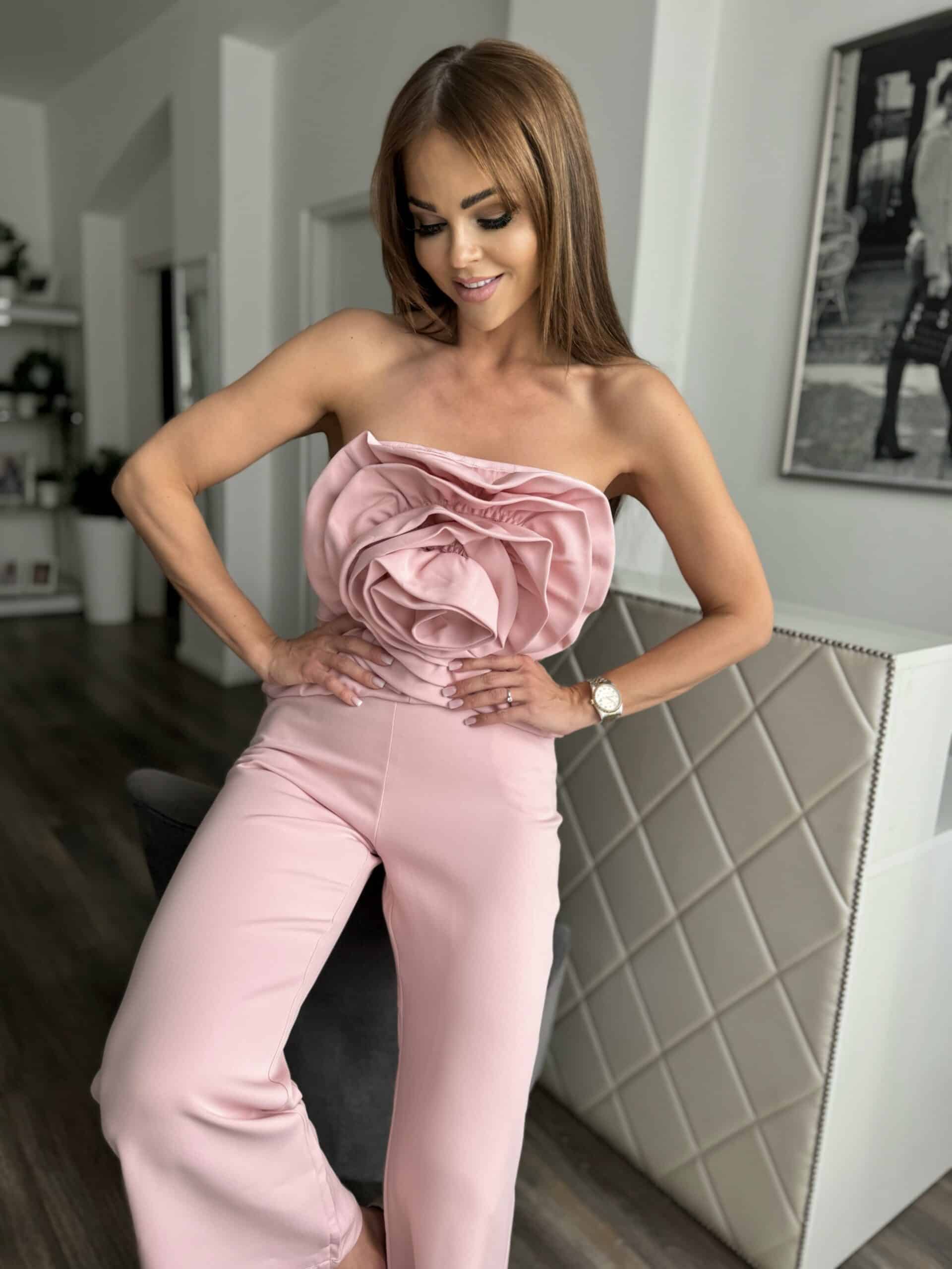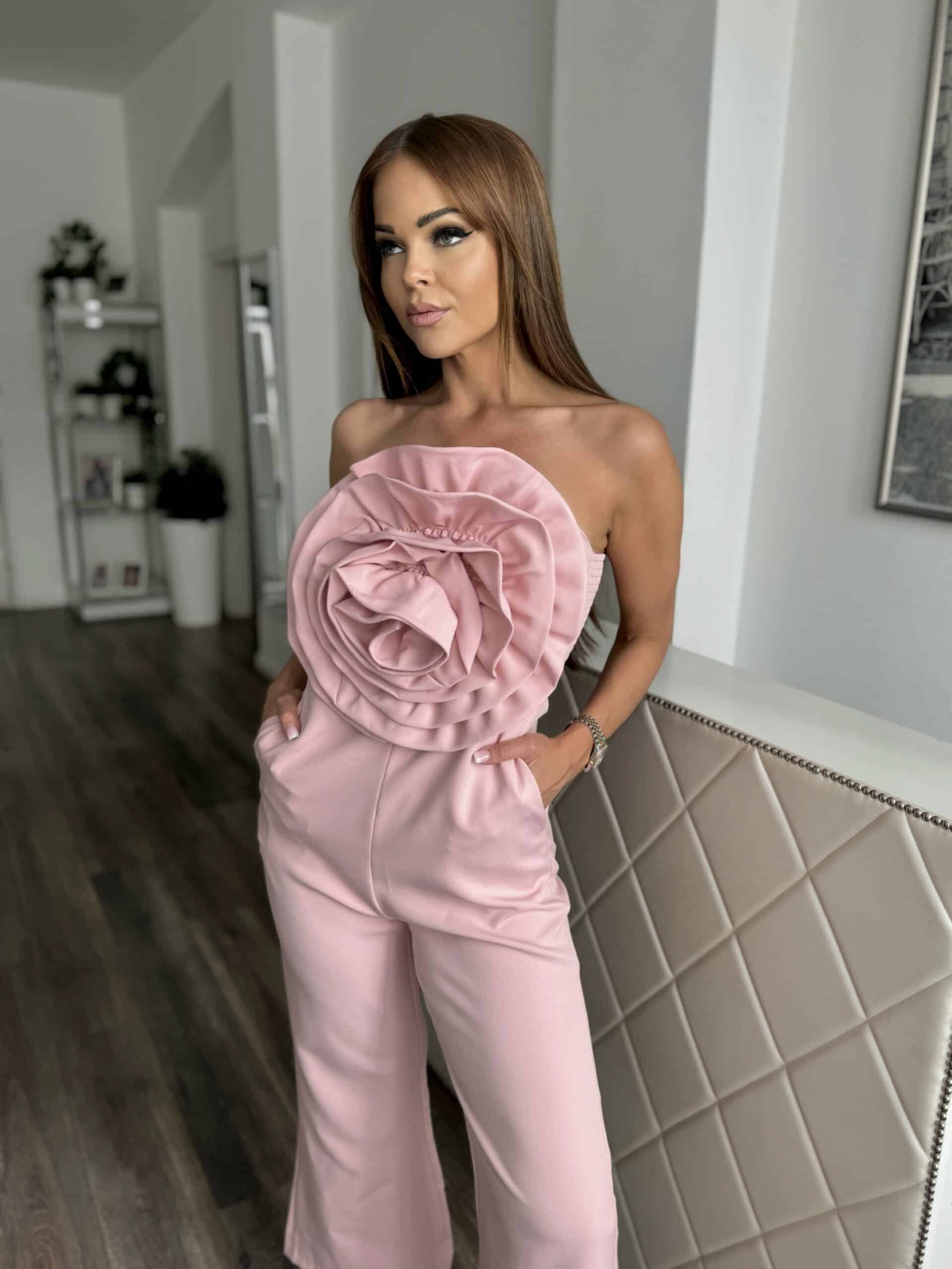 Rózsaszín overál rávarrt rózsa díszítéssel
