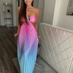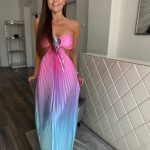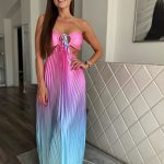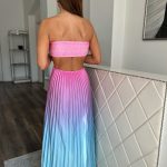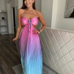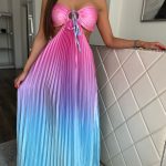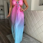 Színátmenetes, pliszírozott, cut out maxi ruha: