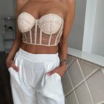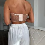 Halványbézs alapon aranyszínű flitterekkel díszített, tüllös míder: