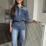 Sötétkék farmer overál: