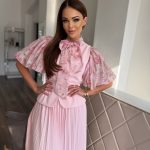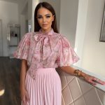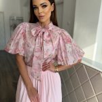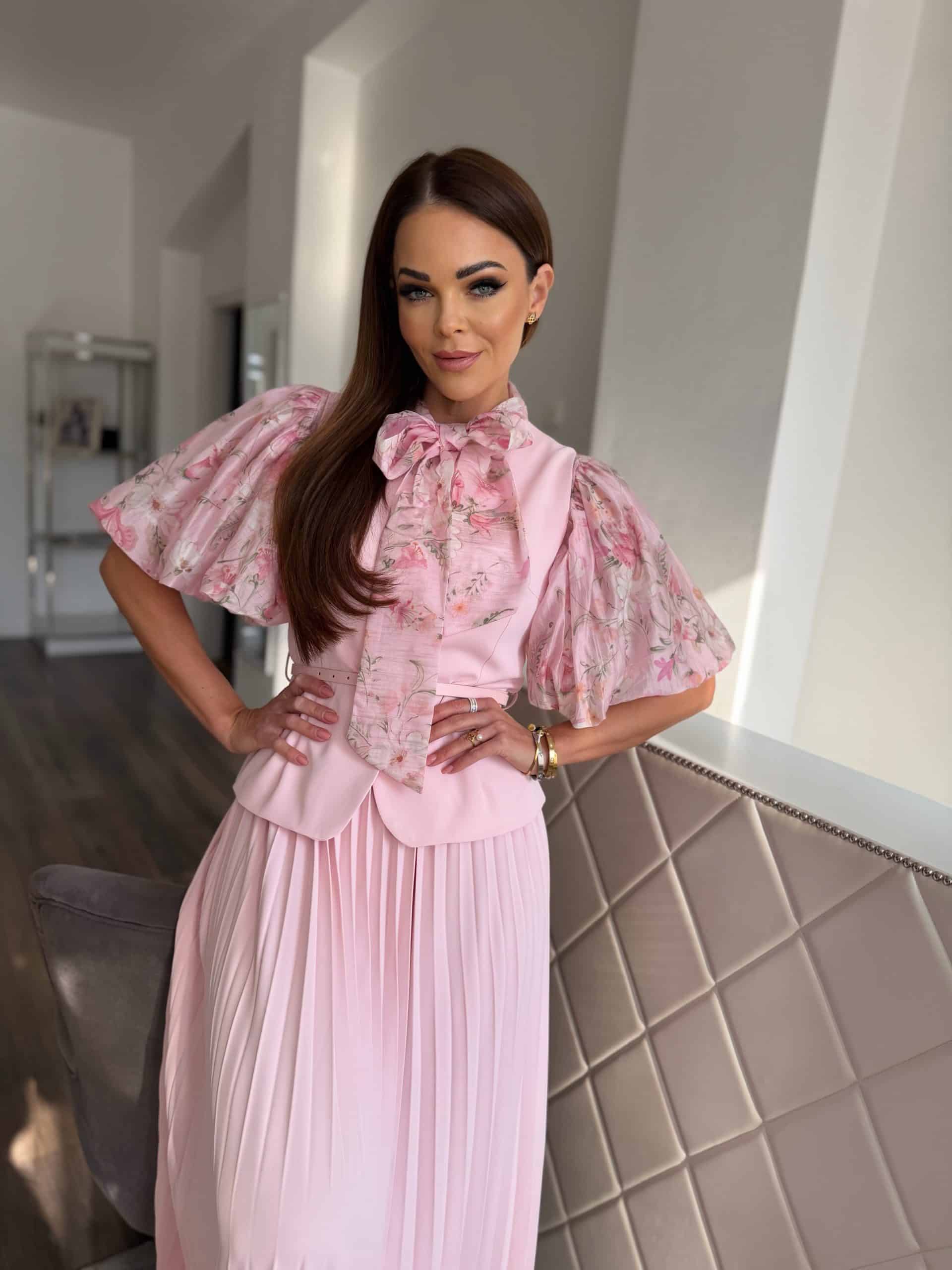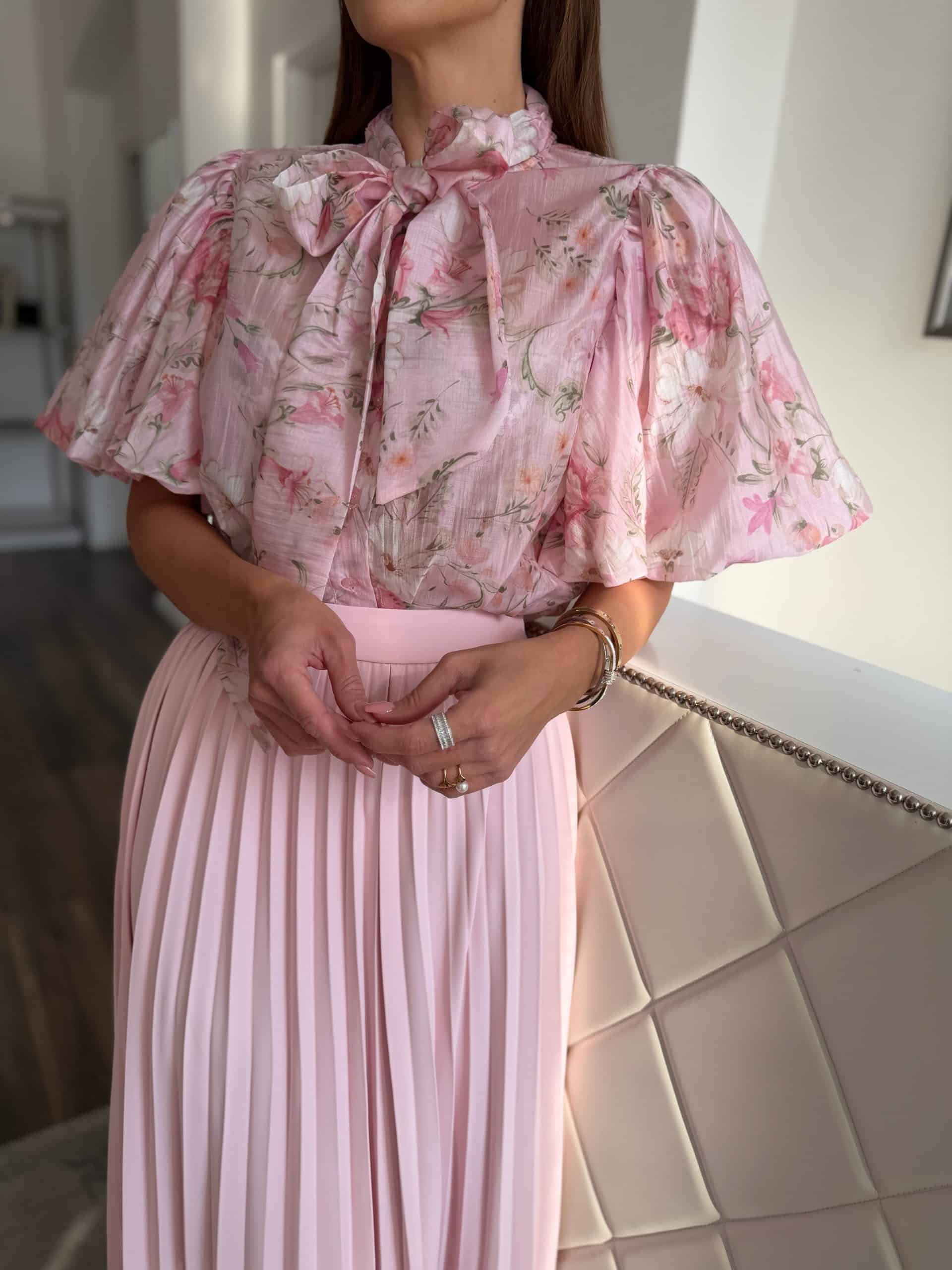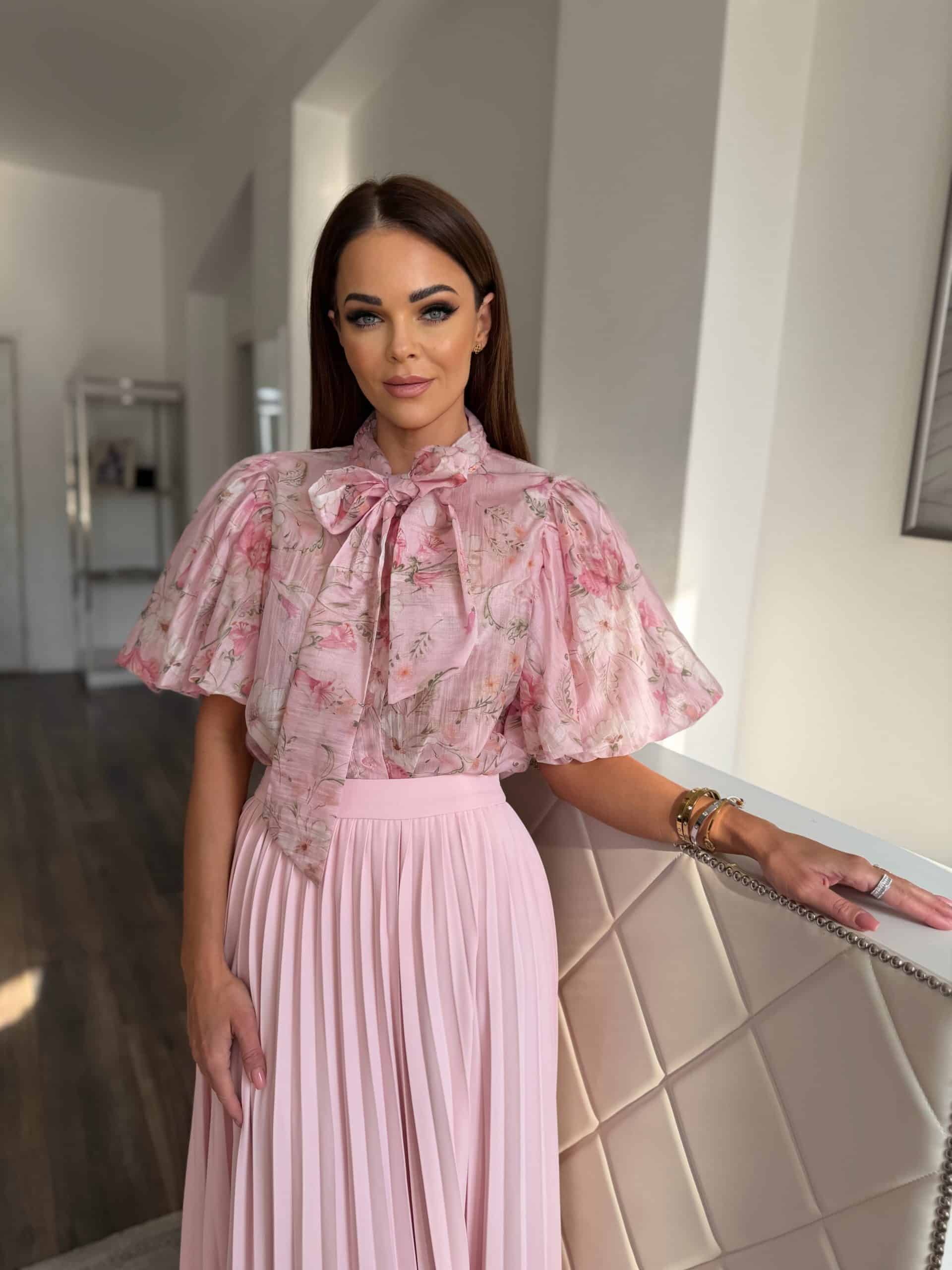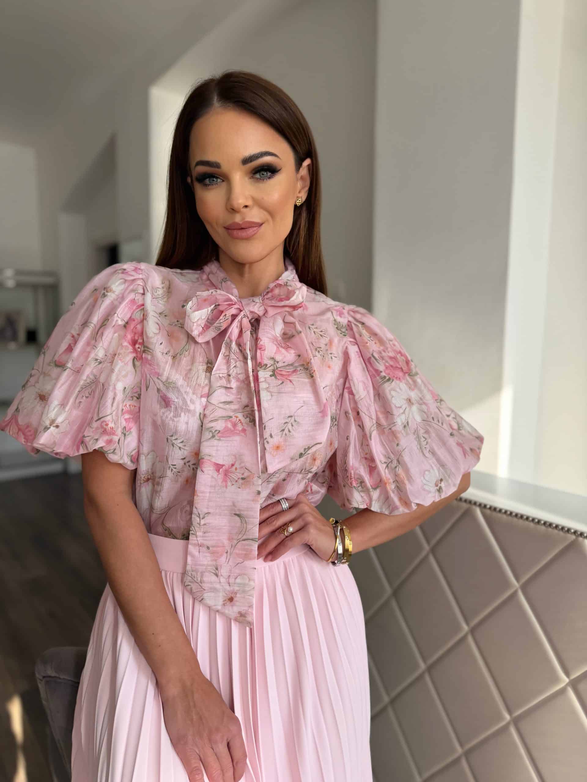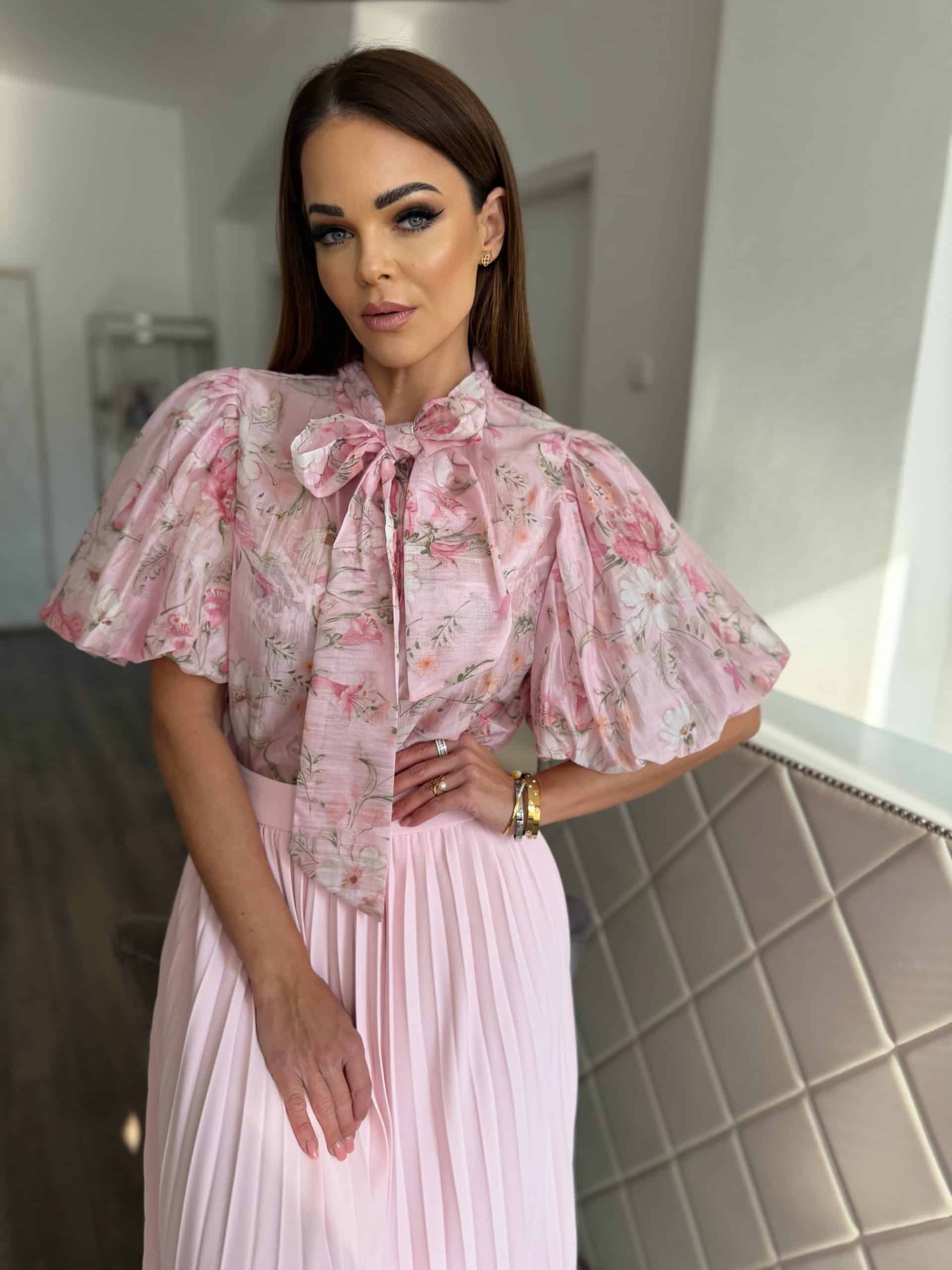 Lágy púderes rózsaszín alapon színes virágmintás ing