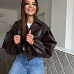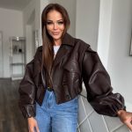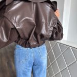 Csokibarna, oversized bőrhatású dzseki: