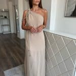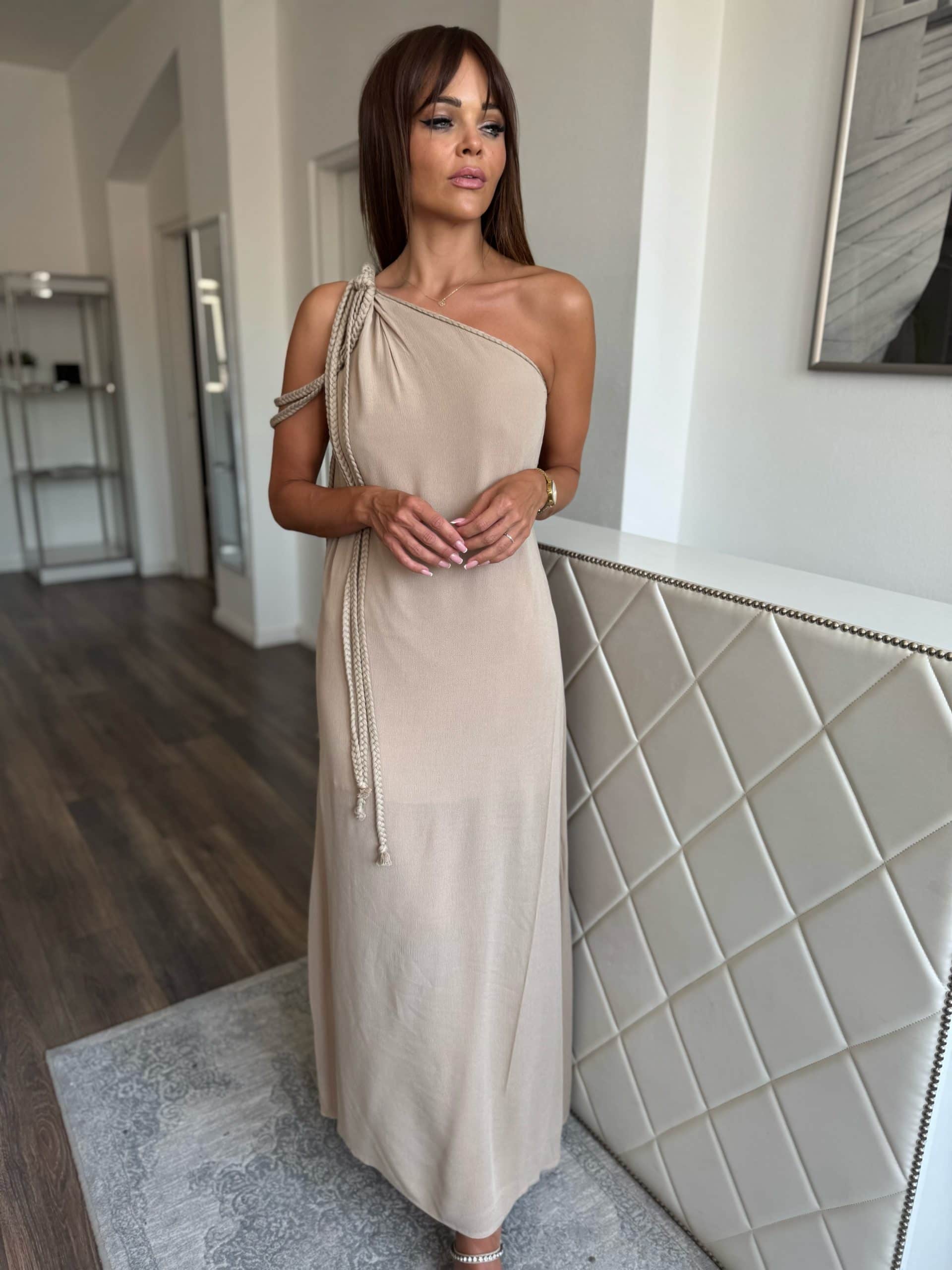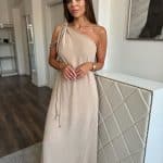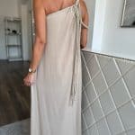 Világos homokszínű, aszimmetrikus maxi ruha: