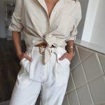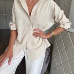 Natúr árnyalatú, pamut-len keverék ing: