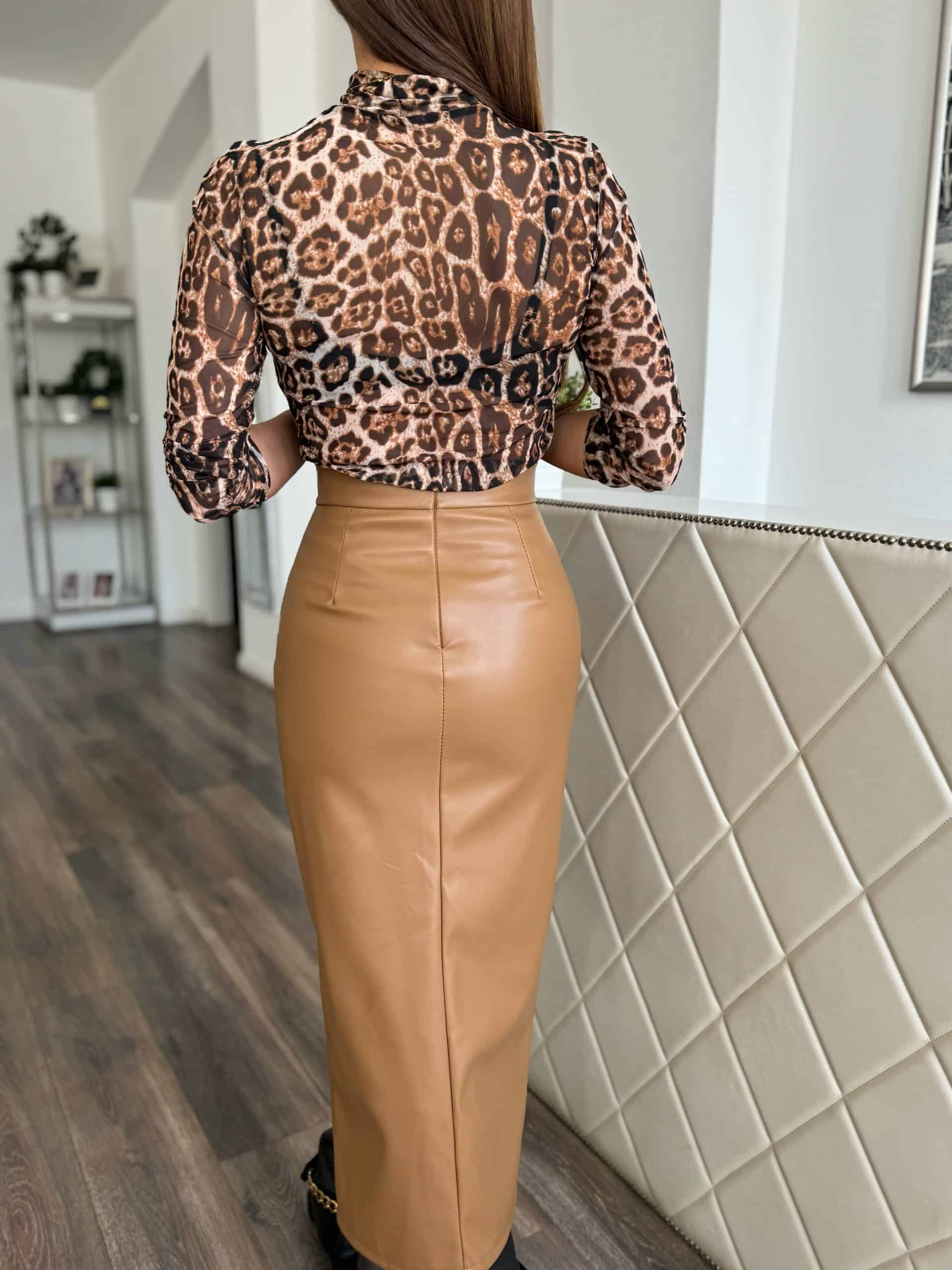 “Emery” bőrhatású midi szoknya – camel