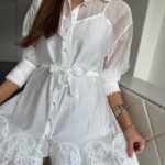 Fehér ingruha csipkés részletekkel: