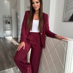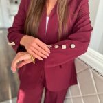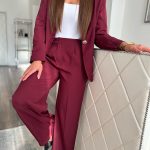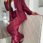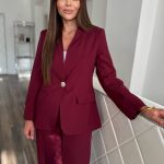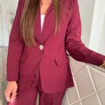Burgundi színű blézer és hosszú nadrág szett: