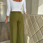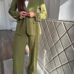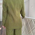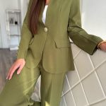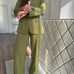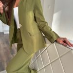 Élénk olívazöld blézer és hosszú nadrág szett: