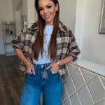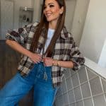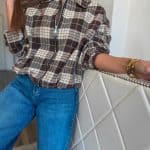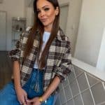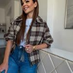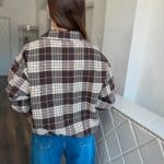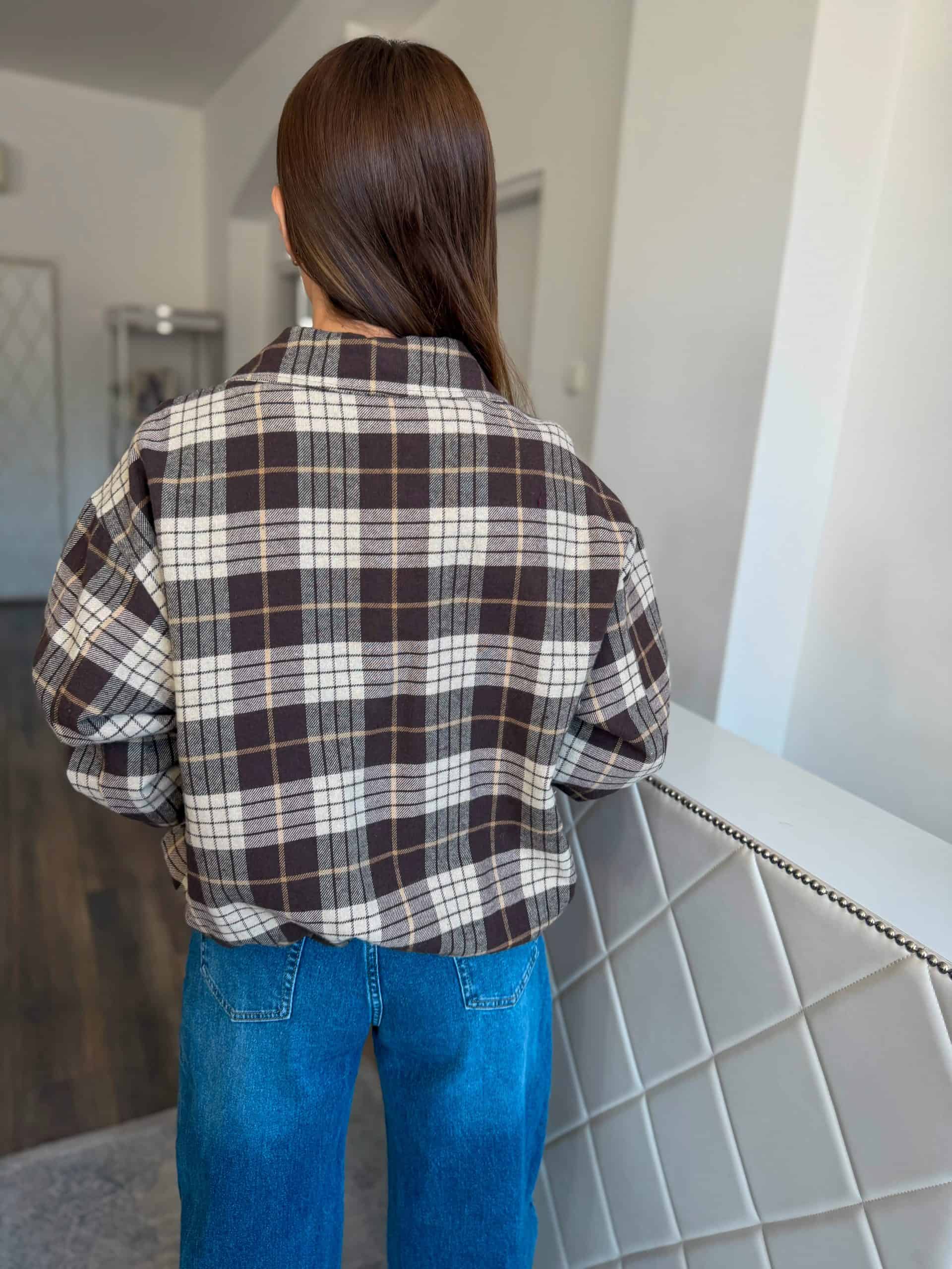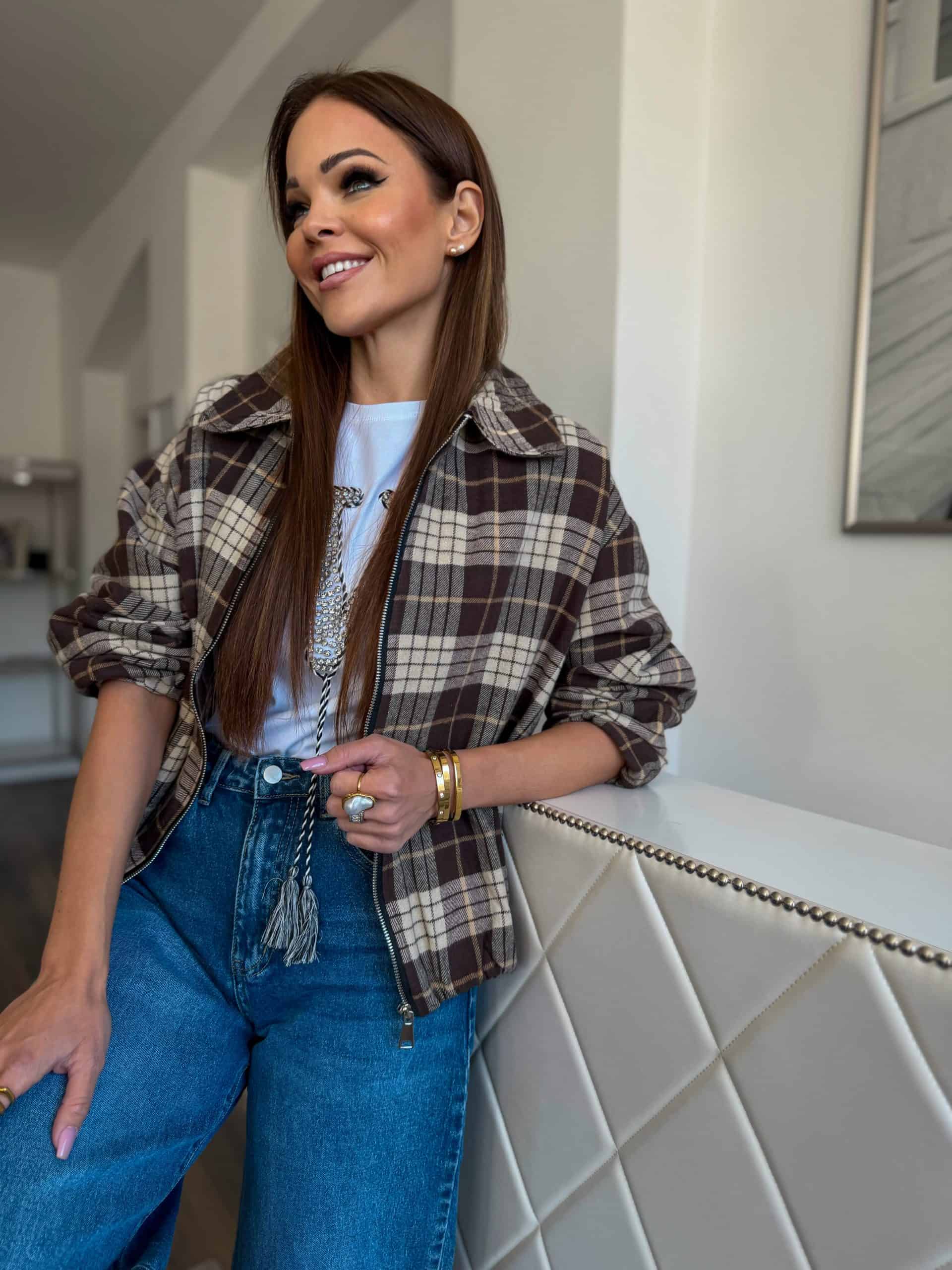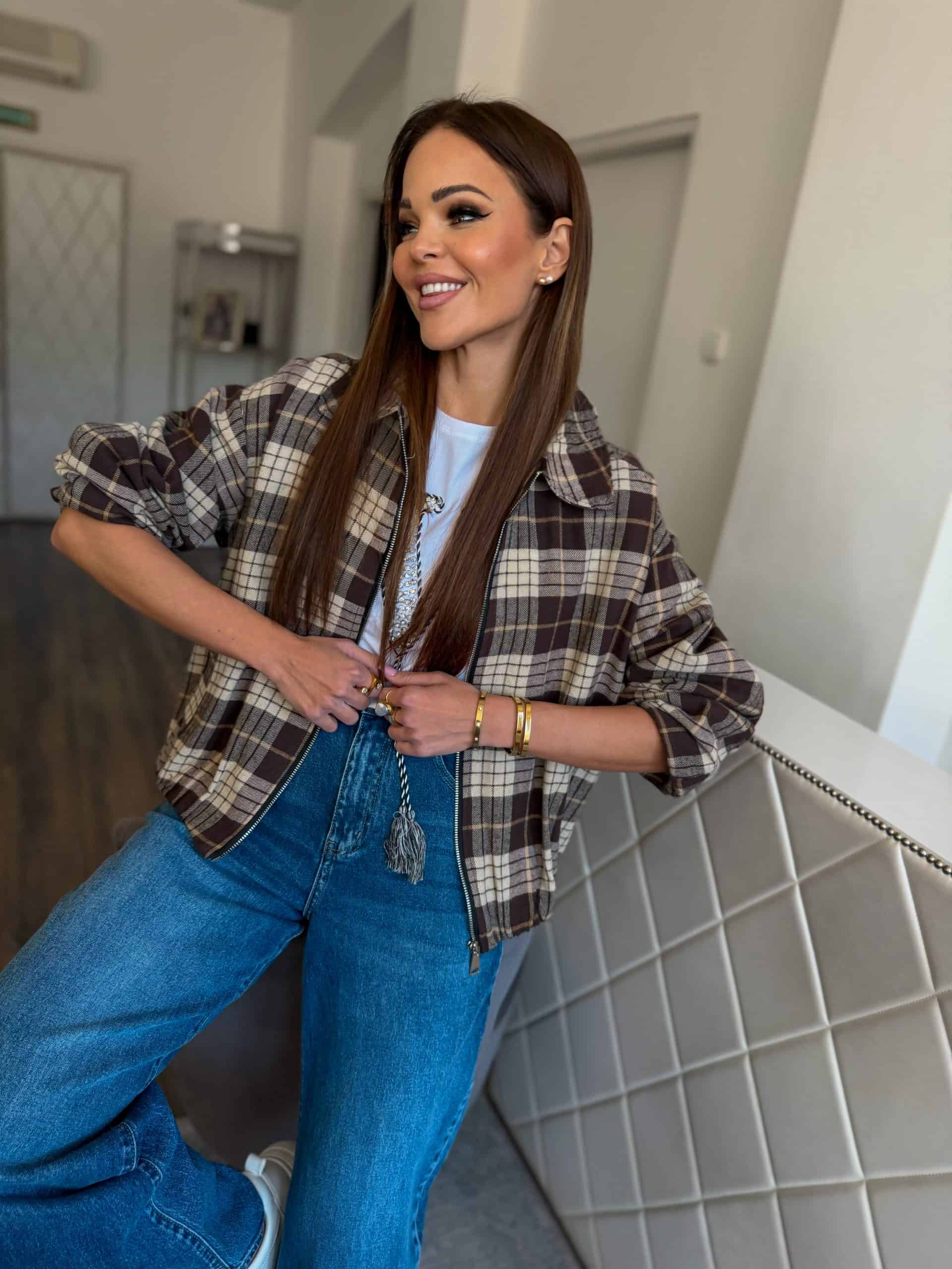 Barna-krémszínű kockás, cipzáras pulóver/dzseki: