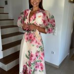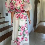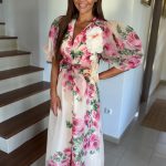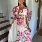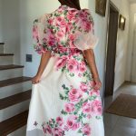 A Garden of Grace maxi ruha a nőiesség és a kifinomult elegancia megtestesítője. Könnyed, áttetsző anyagát gyönyörű rózsaminta díszíti, amely romantikus, mégis modern hangulatot teremt. A puffos ujjak és a masnis öv finom részletei még különlegesebbé teszik ezt a darabot.