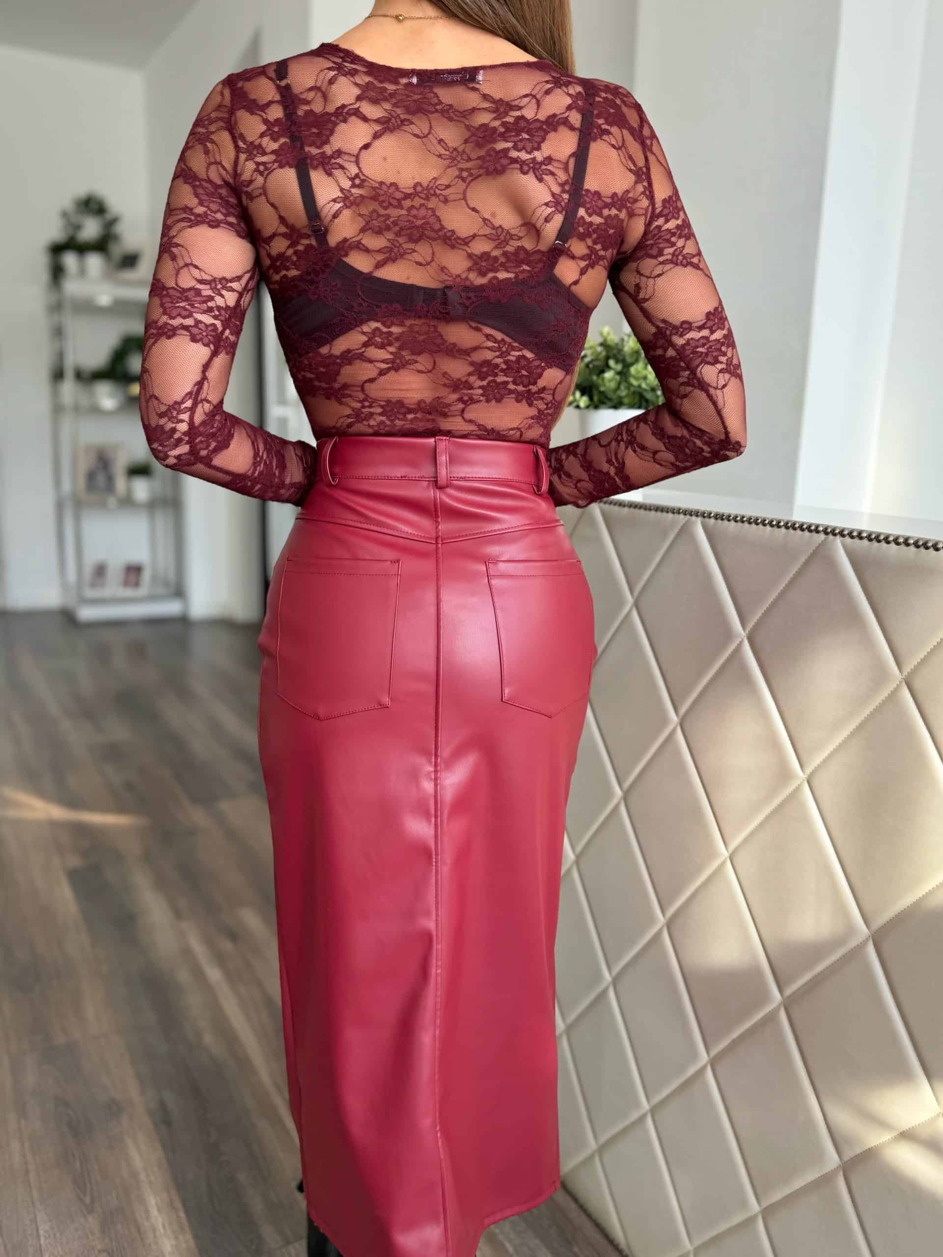 “Georgianna” bőrhatású midi szoknya – burgundi