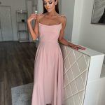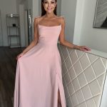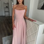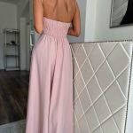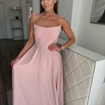 Világosrózsaszín, csillogó alkalmi maxi ruha apró strasszköves díszítéssel: