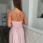 Világosrózsaszín, csillogó alkalmi maxi ruha apró strasszköves díszítéssel