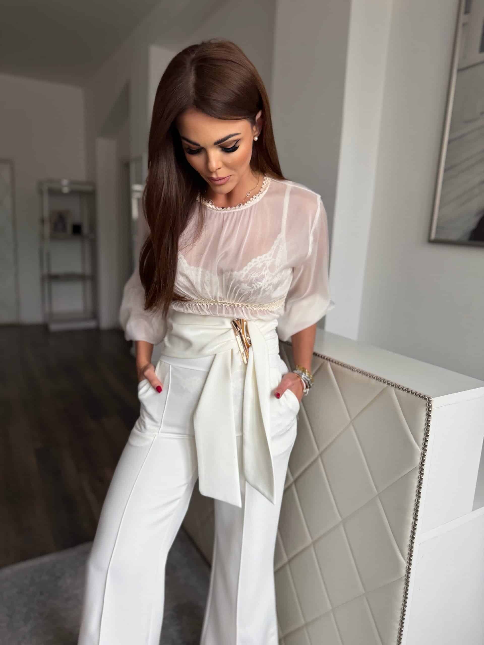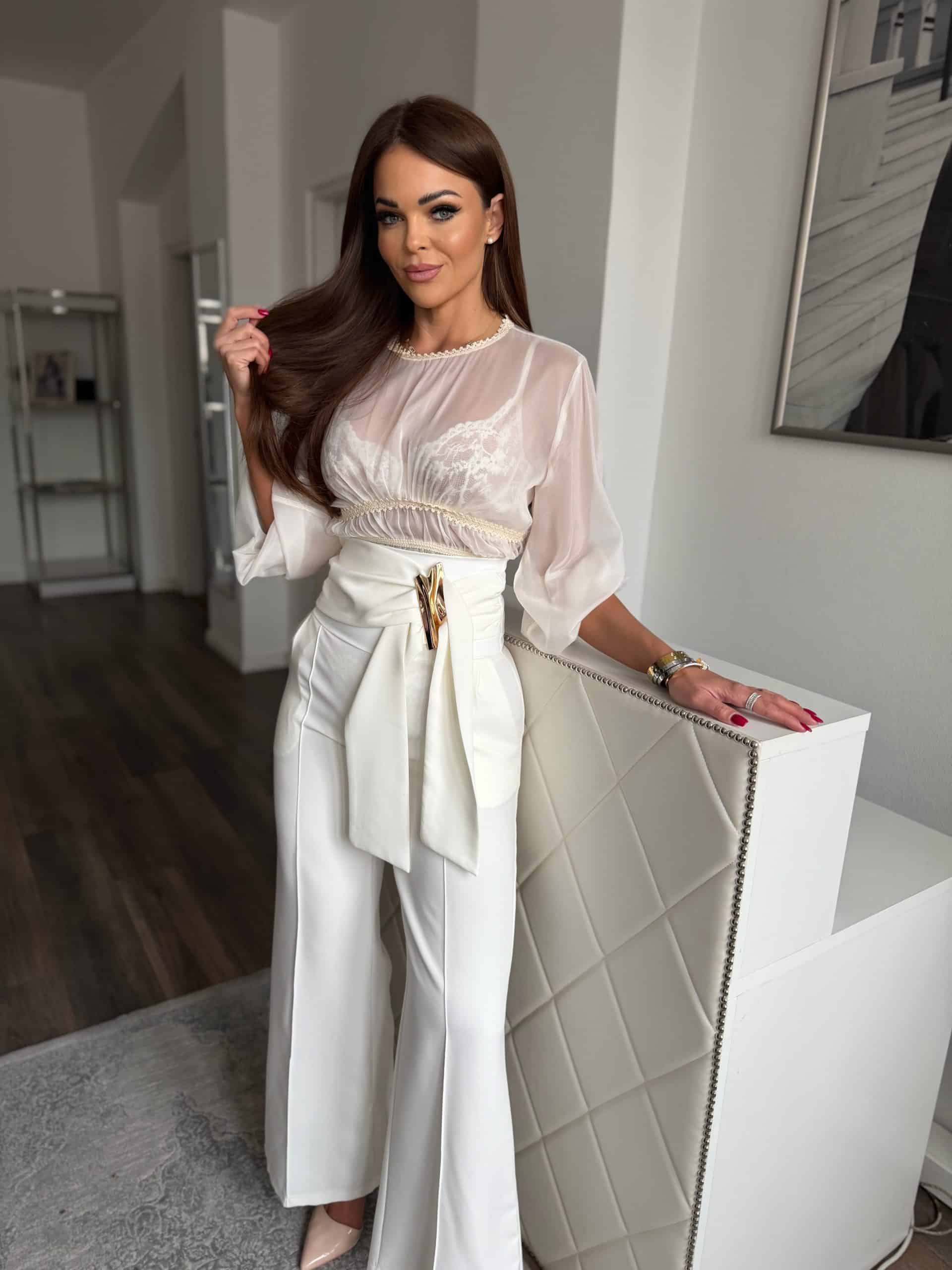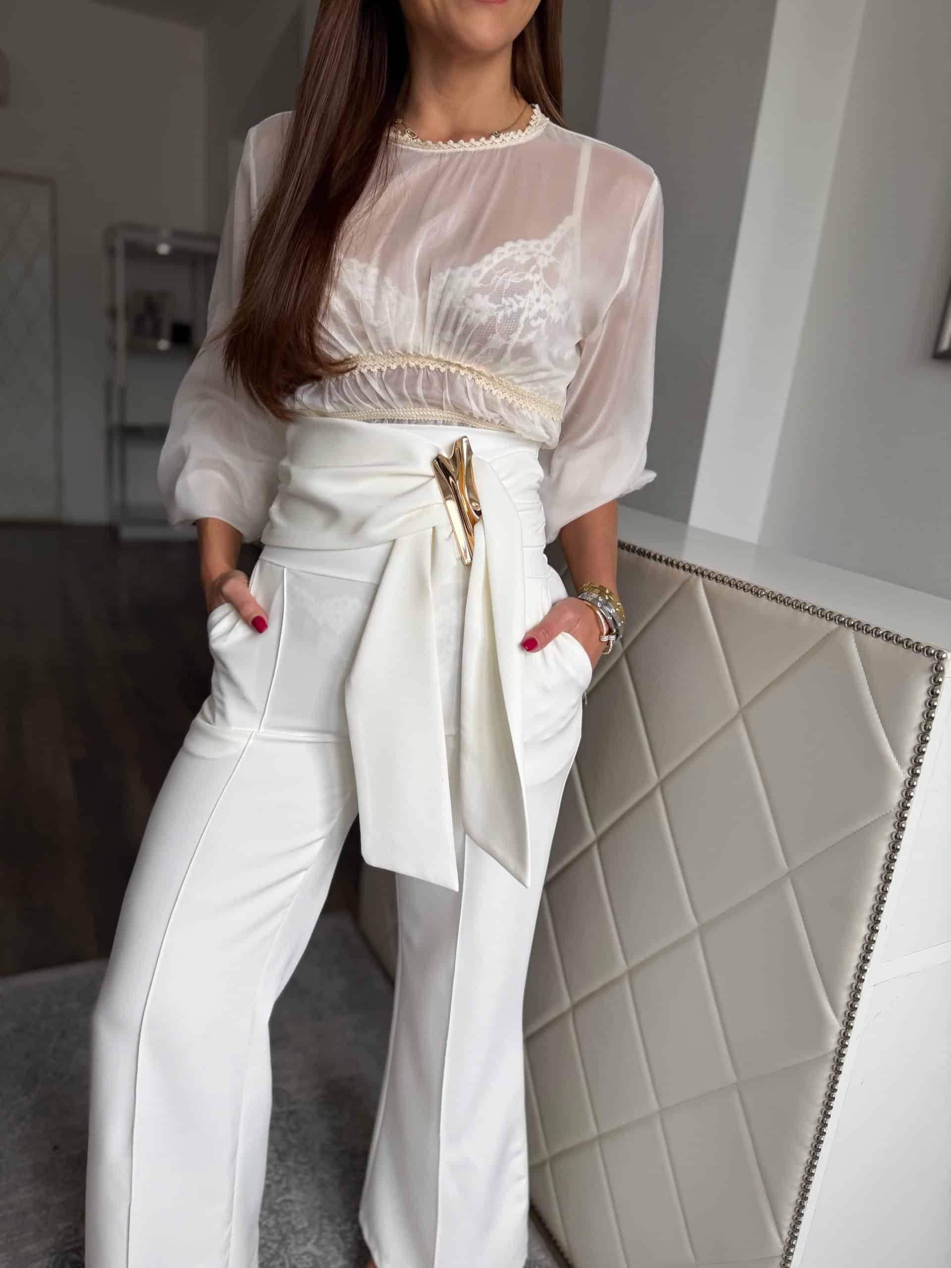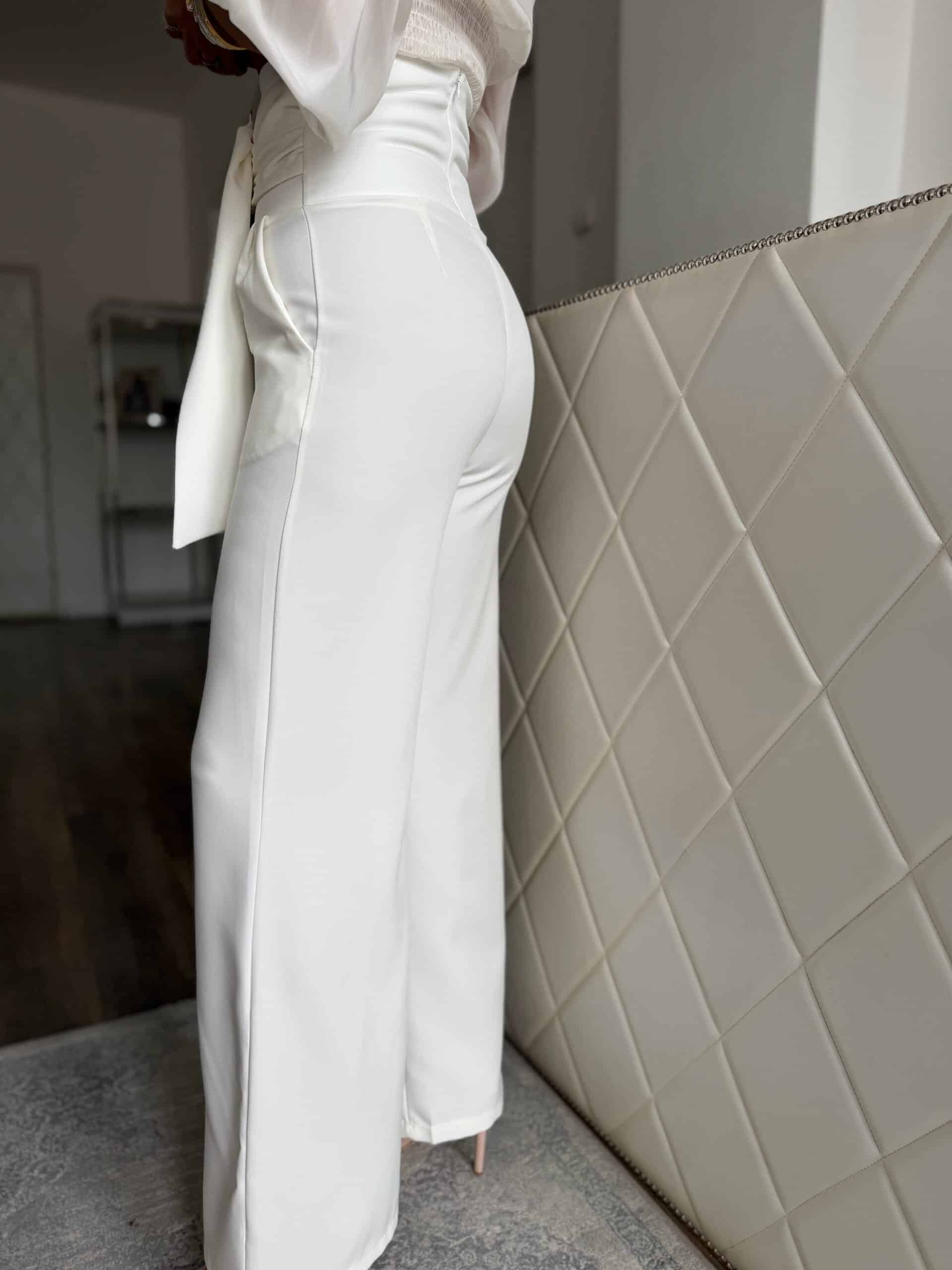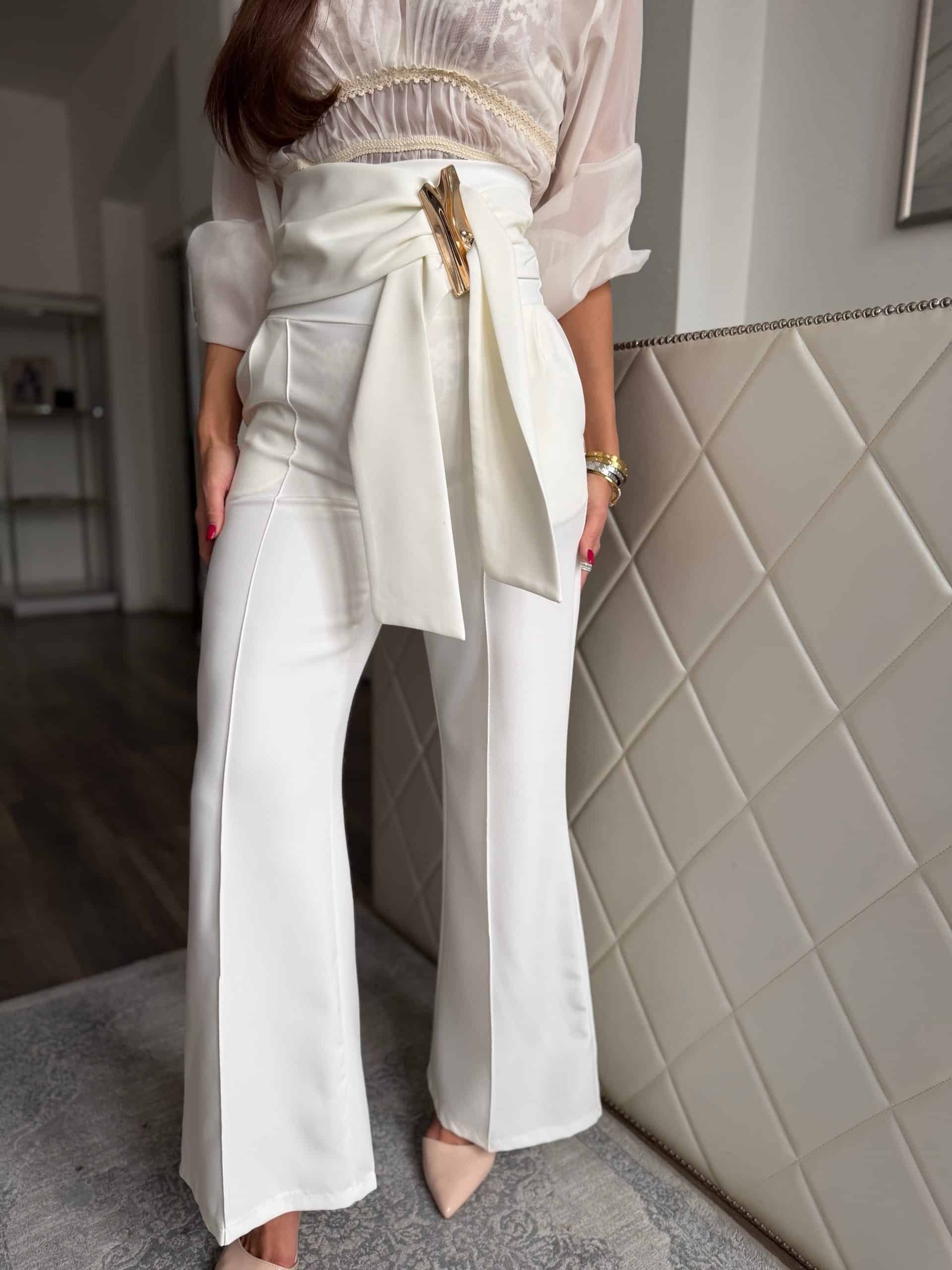 Fehér, magas derekú nadrág: