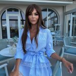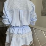 Világoskék alapon fehér csíkos, hosszú ujjú ingruha: