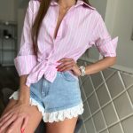 Rózsaszín alapon fehér csíkos és fekete hajszálcsíkos ing: