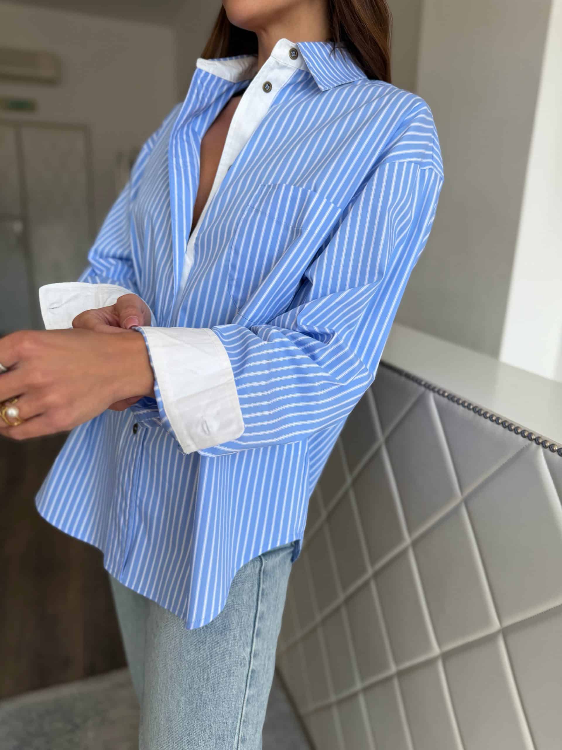 Kék-fehér csíkos, oversize ing: