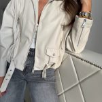 Krémes, meleg tónusú törtfehér bőrhatású dzseki: