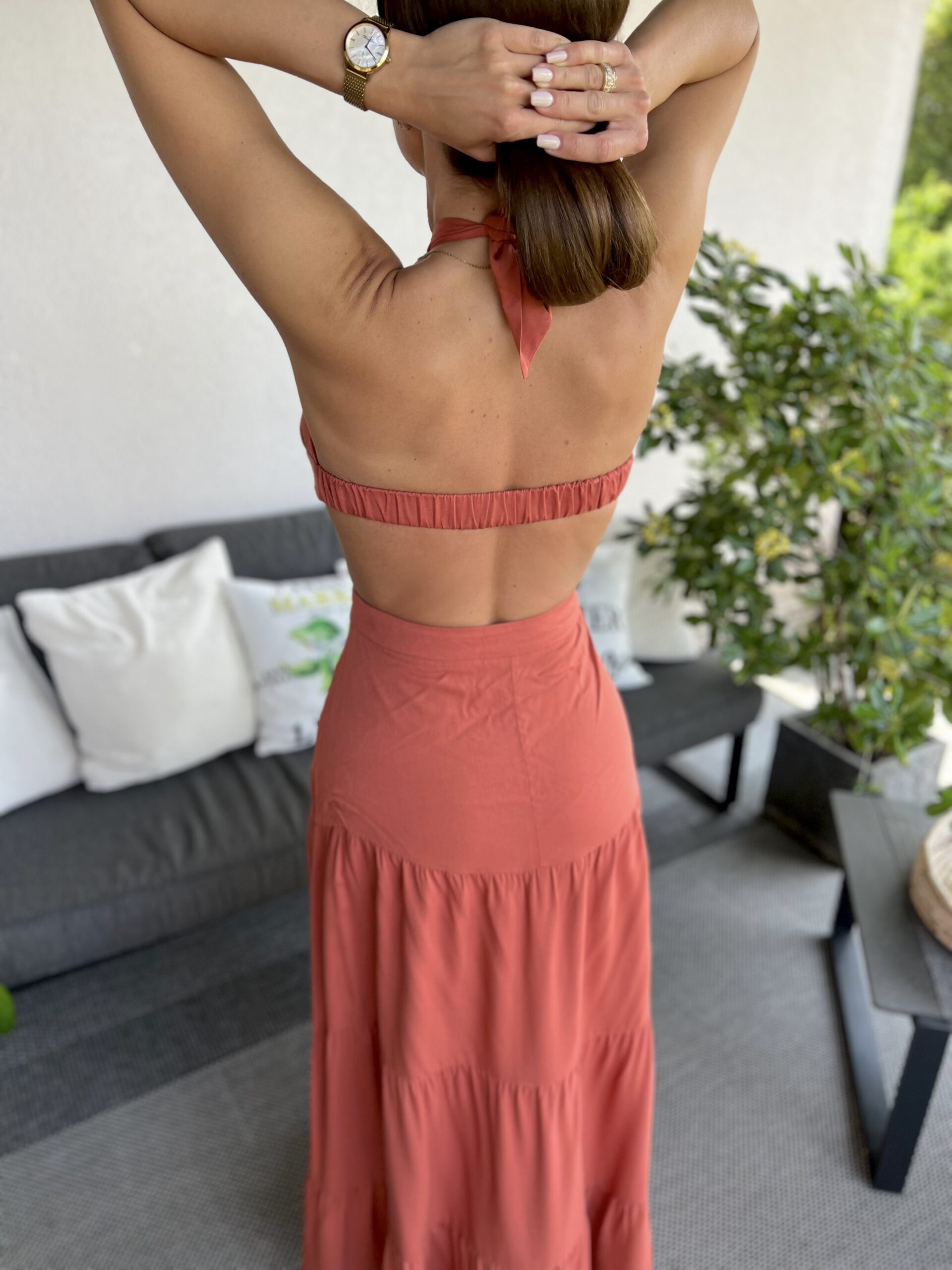 Téglaszínű, cut out maxi ruha: