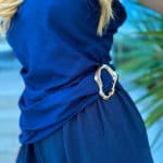 Tengerészkék, aszimmetrikus felső arany díszítéssel: