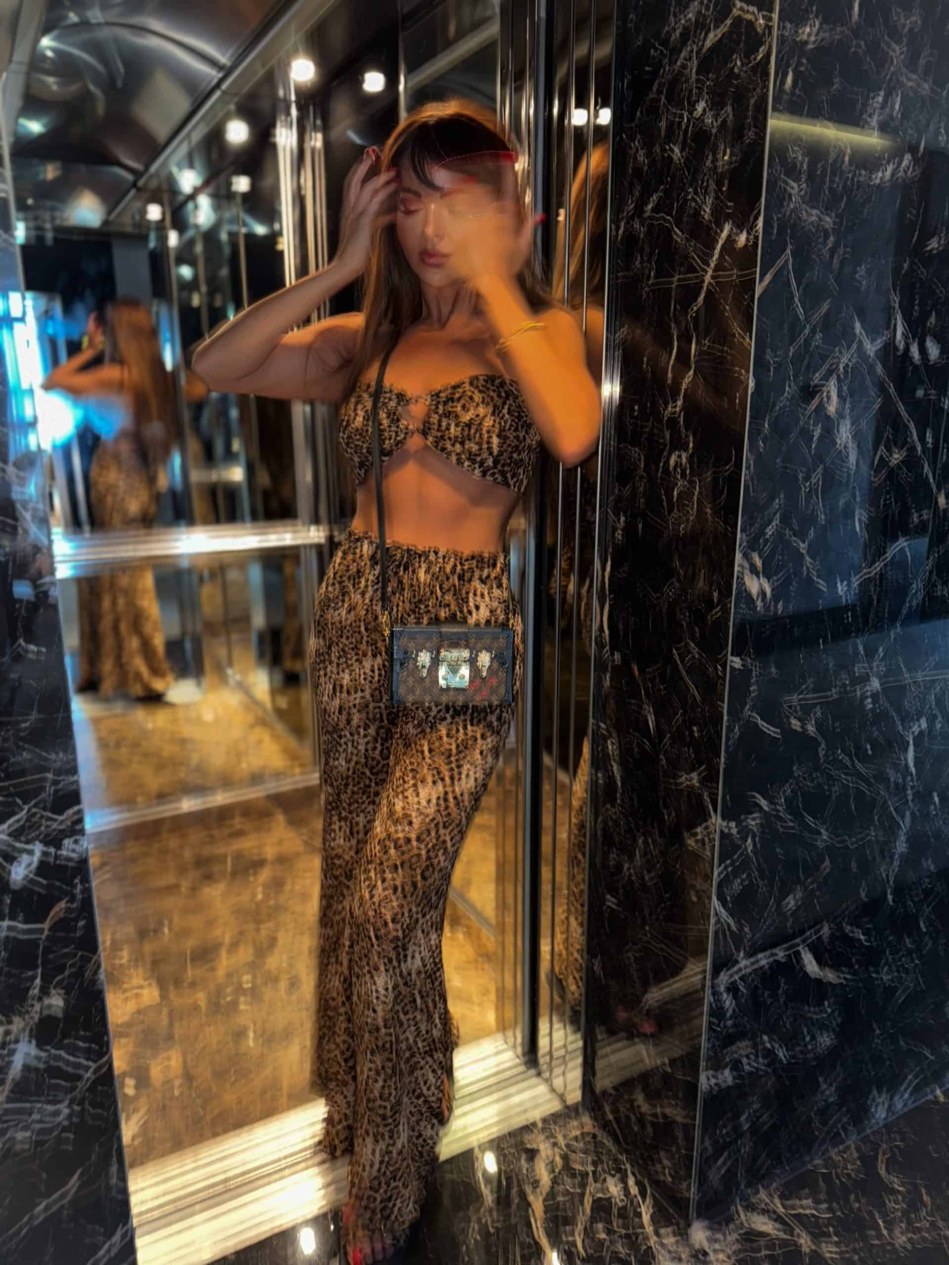 Leopárdmintás crop top és hosszú nadrágszoknya szett