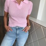 Lágy rózsaszín galléros póló: