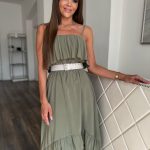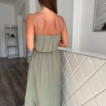 Khakizöld elől rövidebb hátul hosszú ruha: