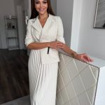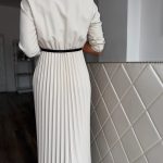 Törtfehér, pliszírozott, aszimmetrikus maxi ruha: