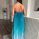 Türkiz színátmenetes, pliszírozott, maxi ruha: